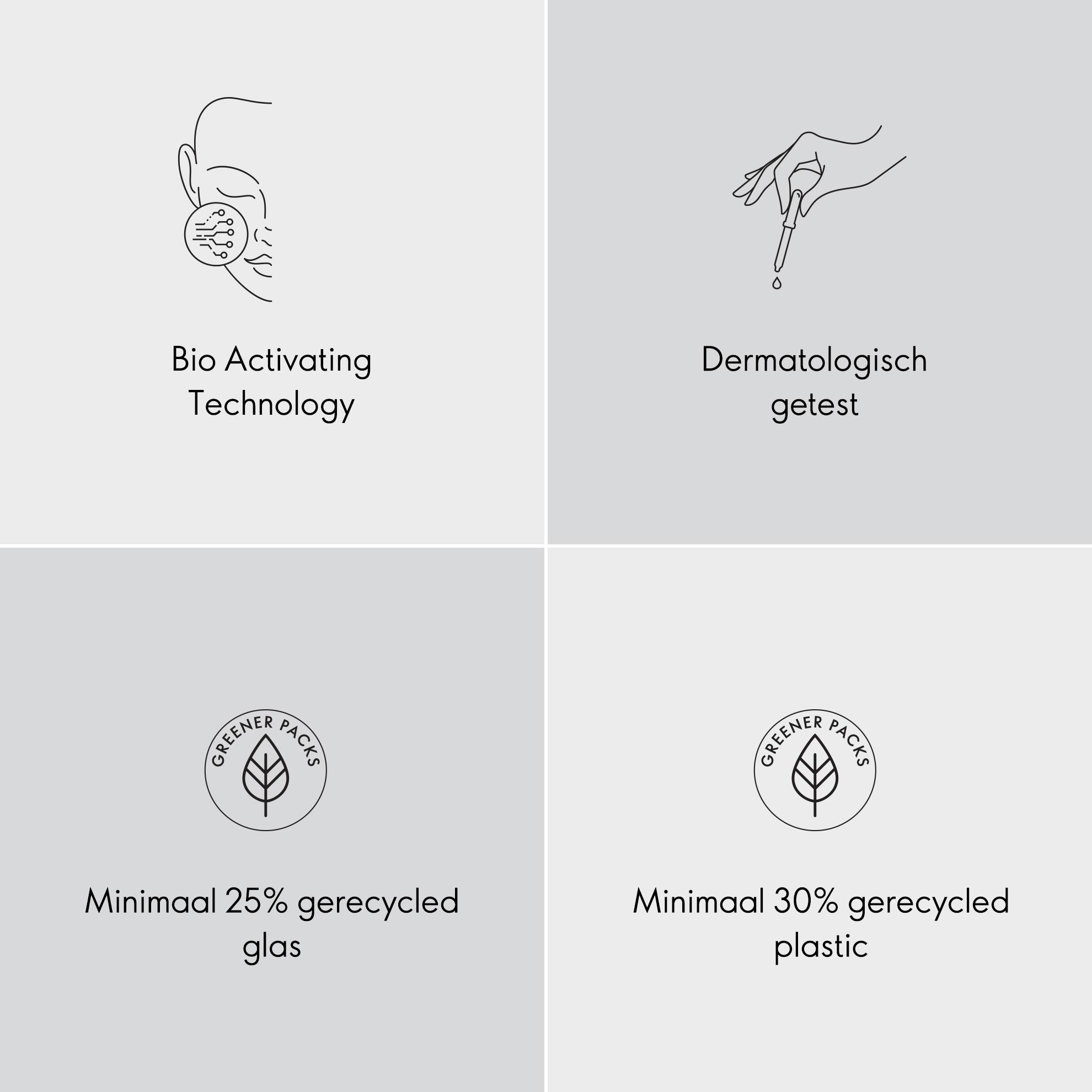 Novage+ biedt cosmeceutische prestaties en is tegelijkertijd zacht voor de huid en de natuur, dankzij onze Bio Activating Technologies, die perfect samenwerken met de biologische functies van je huid – en met elkaar – op een krachtige, milde en nauwkeurige manier.